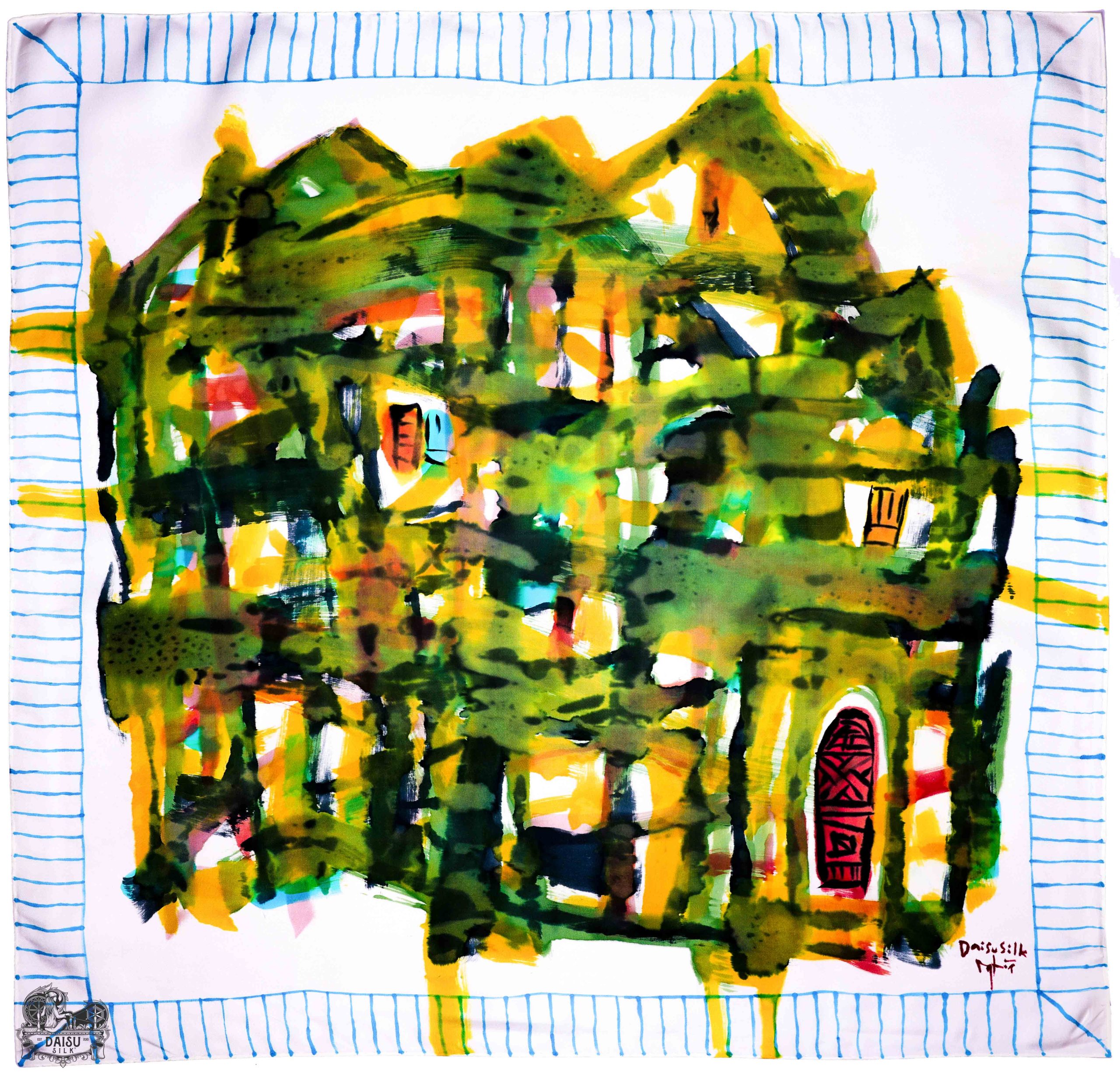 “Ngay tại xưởng chế tác, sau khi vải tơ tằm dệt xong, trải qua các công đoạn kiểm định, nấu chuội làm mềm, khăn sẽ được chuyển sang vẽ tay với những bí kíp màu độc quyền và duy nhất tại Việt nam…”