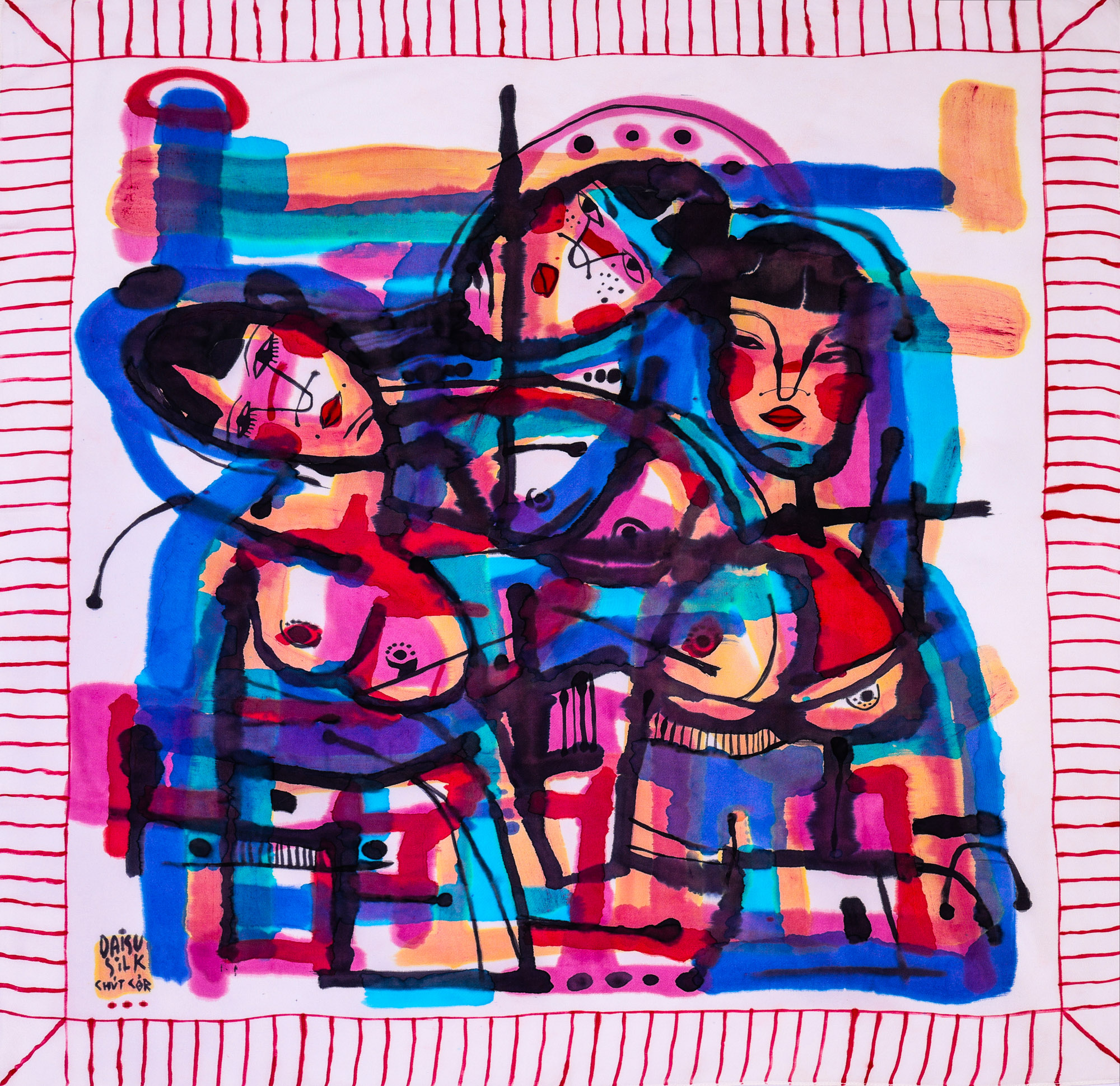 “Ngay tại xưởng chế tác, sau khi vải tơ tằm dệt xong, trải qua các công đoạn kiểm định, nấu chuội làm mềm, khăn sẽ được chuyển sang vẽ tay với những bí kíp màu độc quyền và duy nhất tại Việt nam…”
