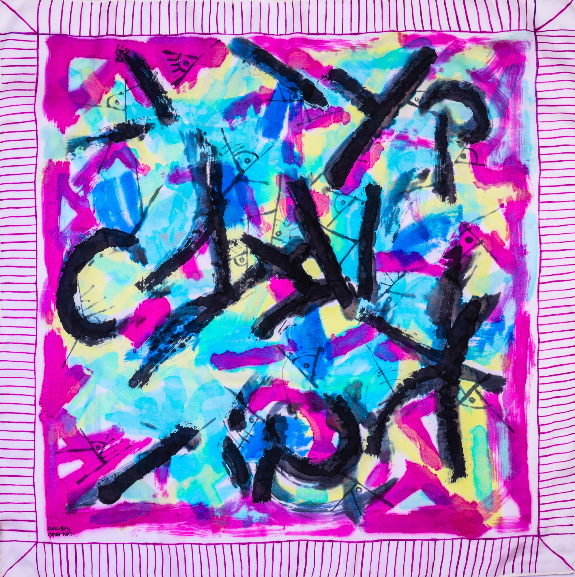 “Ngay tại xưởng chế tác, sau khi vải tơ tằm dệt xong, trải qua các công đoạn kiểm định, nấu chuội làm mềm, khăn sẽ được chuyển sang vẽ tay với những bí kíp màu độc quyền và duy nhất tại Việt nam…”